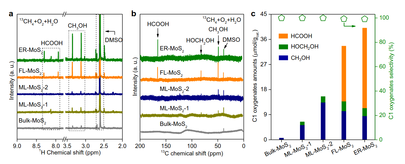 Direct conversion of methane with O2 at room temperature over edge-rich MoS2.
