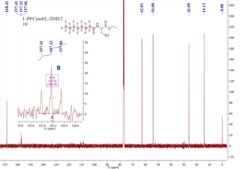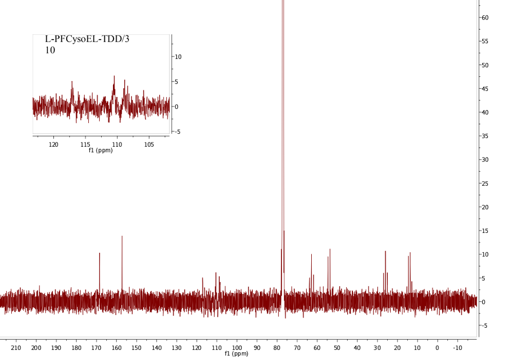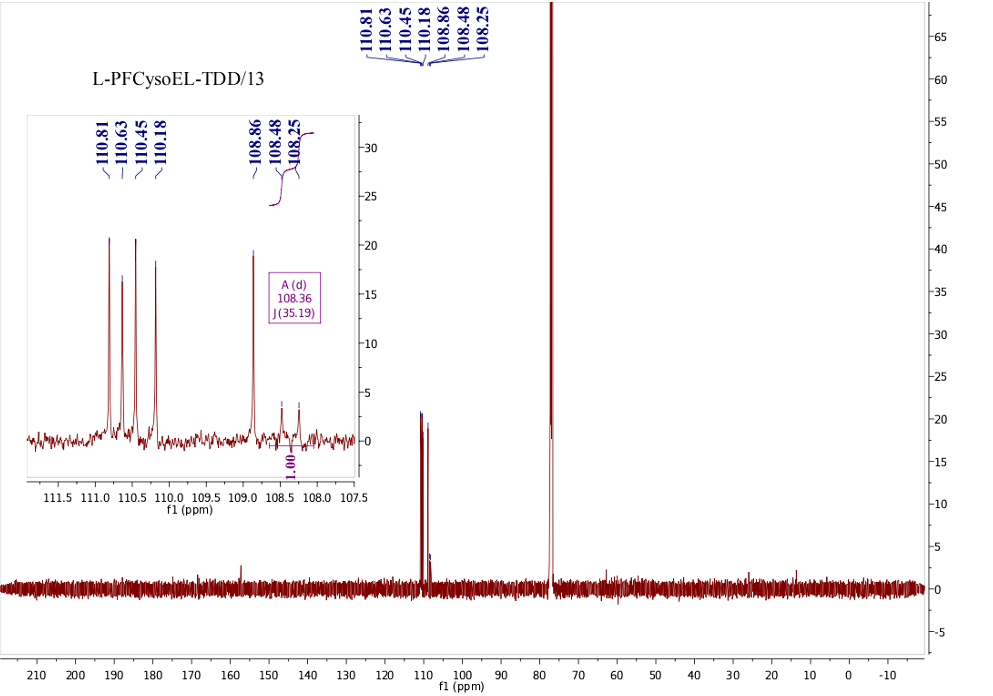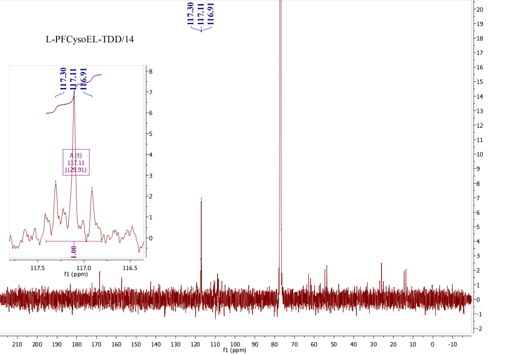 So set the O2P to -80 ppm, we will see the other peak in -117.11 ppm, and that is triple peaks, maybe effect by CF2.