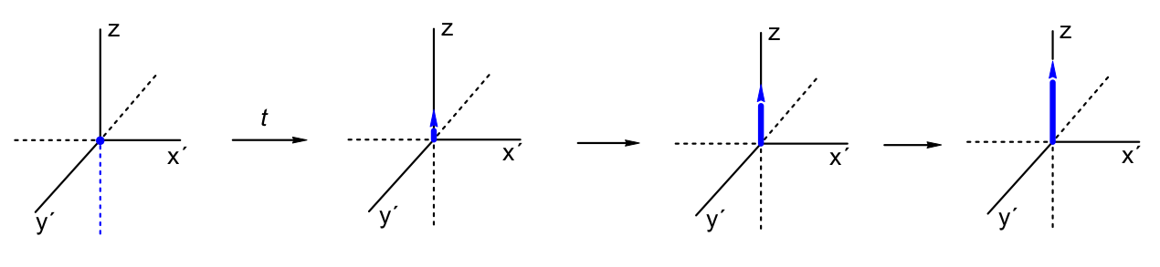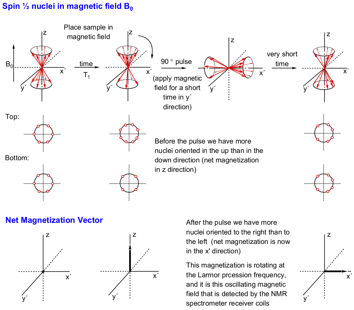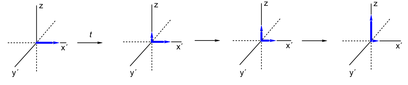 图 8.1-2 核自旋对于90度脉冲响应的符号示意图。
