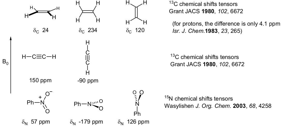 这个机理不会发生氢原子上(化学位移各向异性太小),而且也只会在季碳上看到(比如醛酮化合物,除了乙醛和甲酸,sp3, sp2和sp季碳),但是