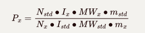 I\_x and I\_{std} define the integrated signal area of the analyte and the standard, respectively.