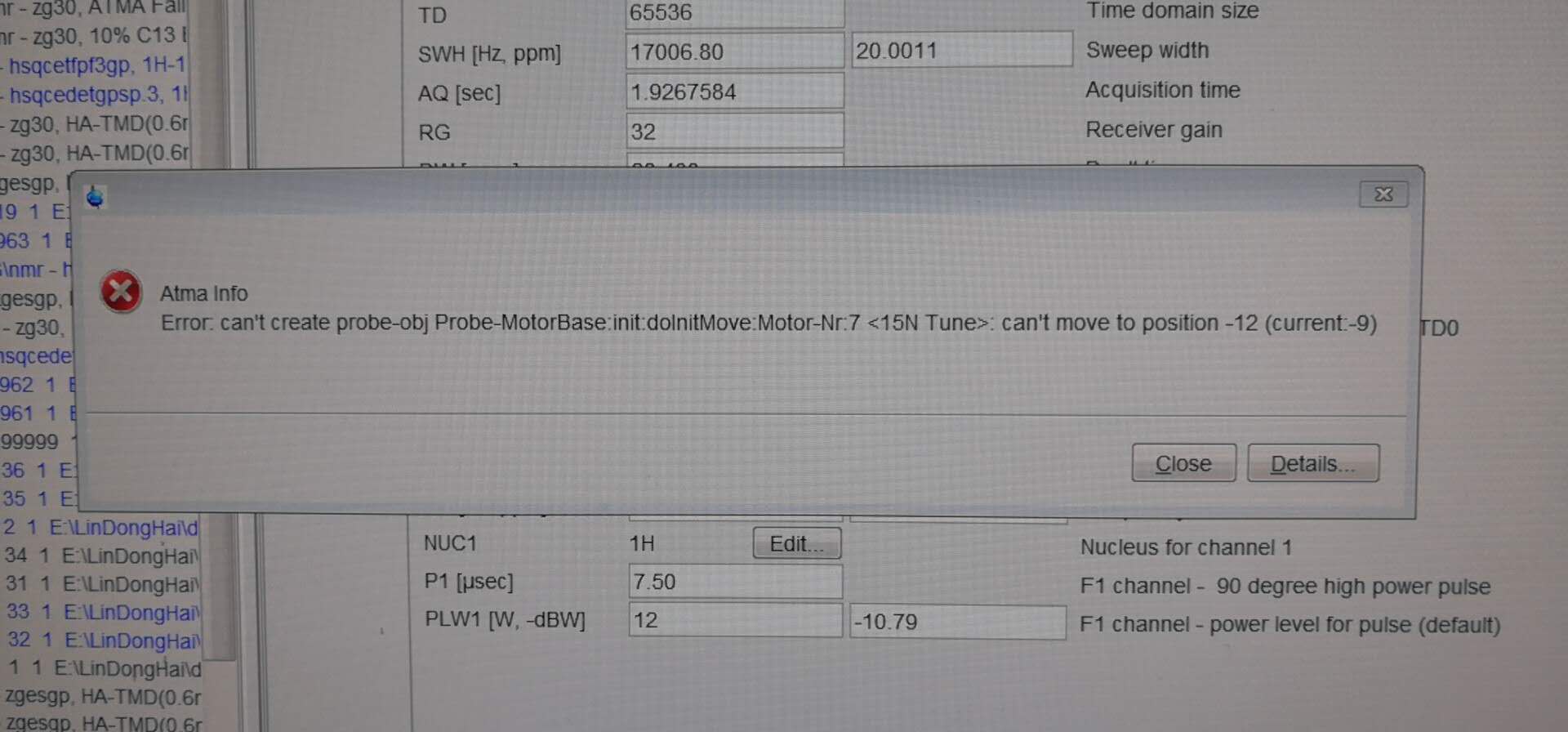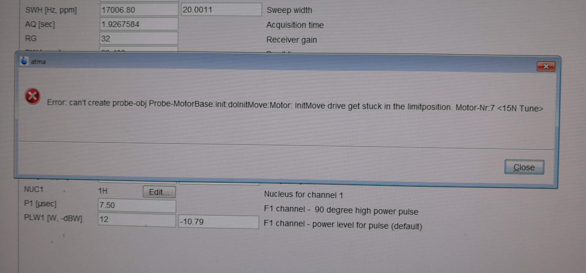 Atma infoError: canot create probe-obj Probe-MotorBase init: doInitMove Motor-Nr: 7<15N Tune>: canot move to position -12 (current 0)