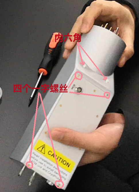 拆开两个内六角螺丝,四个一字螺丝,如下图: