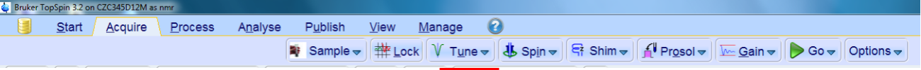 首先刚开始也是来先了解一下 TopSpin 3 的软件界面,如下图所示:(请注意,这个界面和处理界面的区别主要是在于这里面会有很多仪器状态指示,比如样品腔温度,采集信息等等)