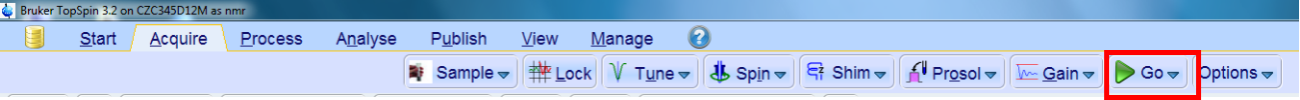 对于1维谱图采集过程中如果需要查看数据,需要用到 tr 等待 Topspin 底部出现“zg:stored NS=…….”信息后,可以进行后数据处理。如果觉得已经得到满意的谱图,输入 halt ,提前停止实验,请勿使用 stop,因为 stop 是停止实验而不保存实验数据。而对于2维谱图,如果在采集过程中需要查看数据,直接输入后输出处理命令就可以了,建议2维谱图不要提前结束实验,会导致间接为分辨率比较差。