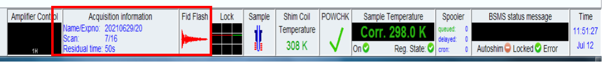 开始采集以后,会在 TopSpin 底部出现采集信息,以及剩余时间,如下图所示: