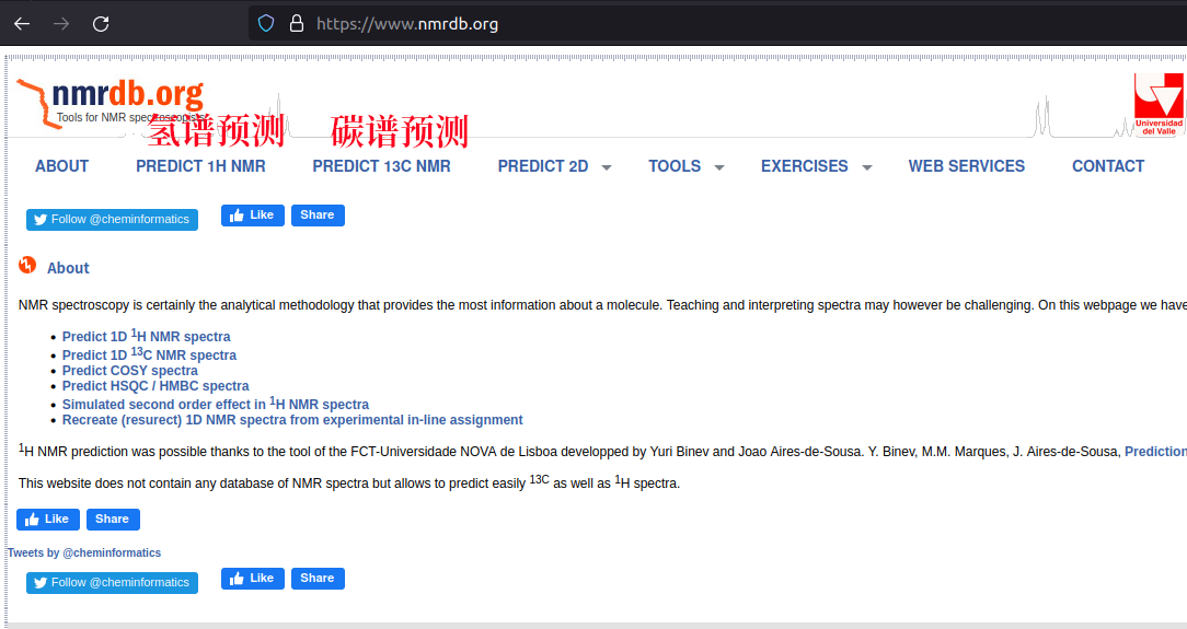 nmrdb这个网站不仅可提供预测1H NMR,13C NMR,还有一些习题让你从谱图做结构解析,有空可以做做里面的习题。